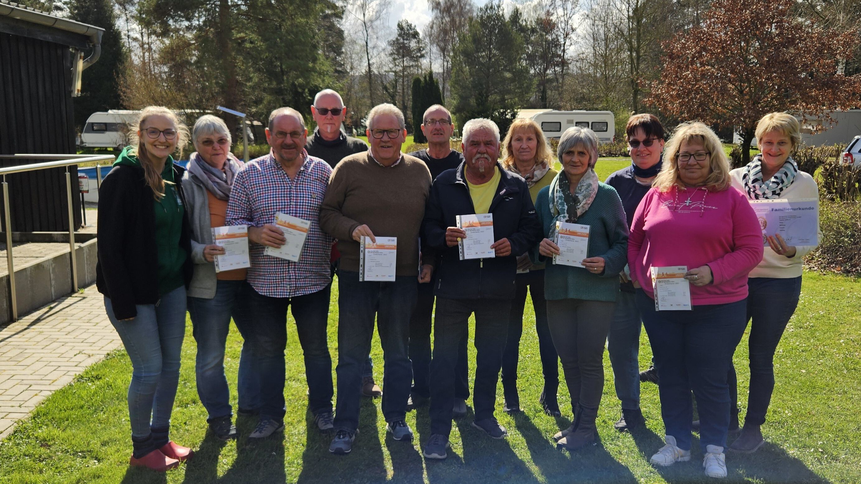 Jeweils eine Sportleistung in den Kategorien Ausdauer, Kraft, Schnelligkeit und Koordination sind zu absolvieren. 22 Erwachsene (Bernhard und Petra Kempa, Wolfgang Erben, Semira Thiel, Kerstin Rau, Silke Jansen, Yvonne Kratzert, Manfred Schutzmeier, Uwe Hüttner, Andreas Braungart, Jürgen Hölken, Silva Döll, Torben Külpmann, Daniela, Carolin, Matthias und Ilona Giffhorn, Ralph-Peter Stammwitz, Andre, Kimberly, Sabine und Detlef Ostermann) und drei Jugendliche (Luna, Jaane und Ayleen Hölken) haben diese Übungen erfolgreich gemeistert. Die Aktiven freuten sich über die Verleihung der Jugend- und Erwachsenensportabzeichen in den Auszeichnungen Bronze, Silber und Gold. Einige Aktiven bekamen schon besondere Auszeichnungen für die mehrfache Wiederholung. Insgesamt eine großartige Leistung.