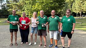 Am 26. Juli fanden unsere Vereinsmeisterschaften im Petanque statt – und das bei erstaunlich gutem Wetter, das in diesen Tagen ja nicht selbstverständlich ist. Zu Beginn erläuterte Bernhard noch einmal die FSB-Spielregeln und dann ging es auch schon los. Insgesamt 16 Teilnehmer*innen traten an, wobei jeweils vier Dubletten in einer Gruppe gegeneinander spielten. Die Gruppenspiele hatten es schon in sich: Es wurde geflucht, gejubelt und vor allem mit viel Spaß wurde um jeden Punkt gekämpft.
